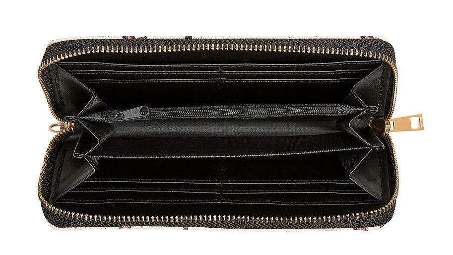 This is the perfect gift for all fashionable Equestrians! This zippered wallet with wristlet includes three inside compartments along with two bill fold slots and eight credit card slots. There is also plenty of room for a mobile phone!