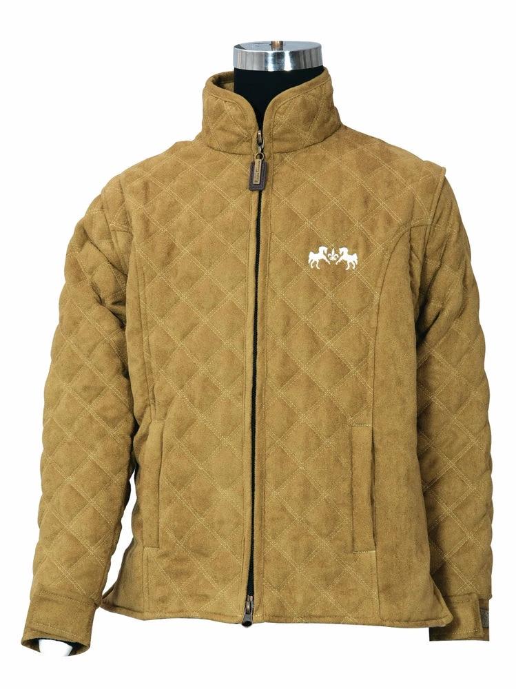 The Equine Couture Natasha Duet Jacket combines elegance and versatility. Perfect for the changing of the seasons this jacket can easily be turned into a vest as it has zip-off sleeves. Additional design features include a dual front zipper, two front pockets, and hook and loop tape wrist closures to properly keep the cold out. Also features an adjustable back cincher to create a more natural waistline. Sure to be a favorite for any young rider the Natasha is ideal for Spring, Winter and Fall! Wash at low temperature, Do not Iron, Do not Bleach, Tumble Dry Low
