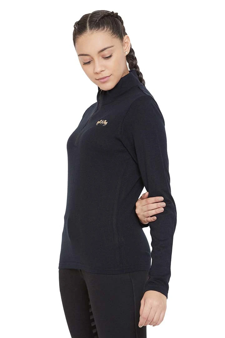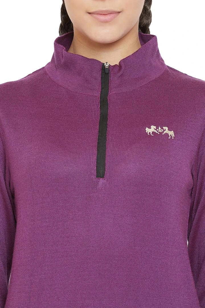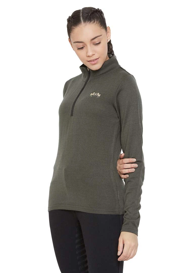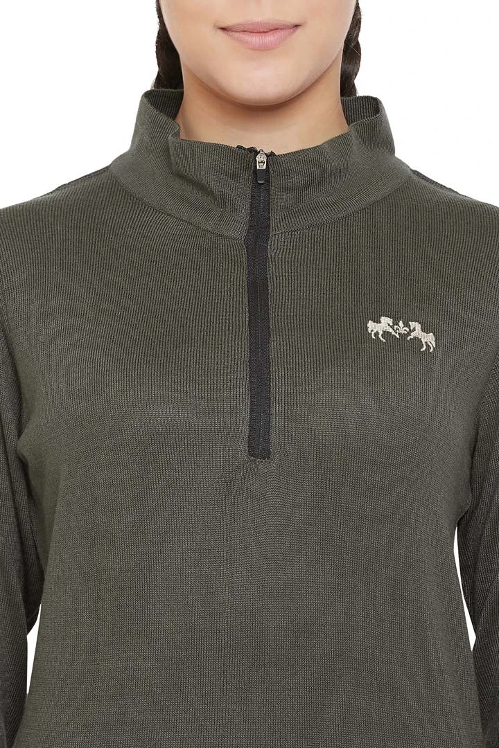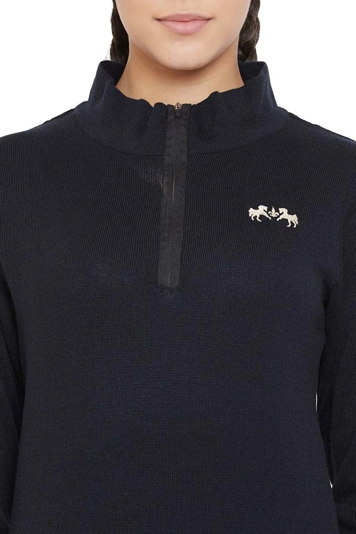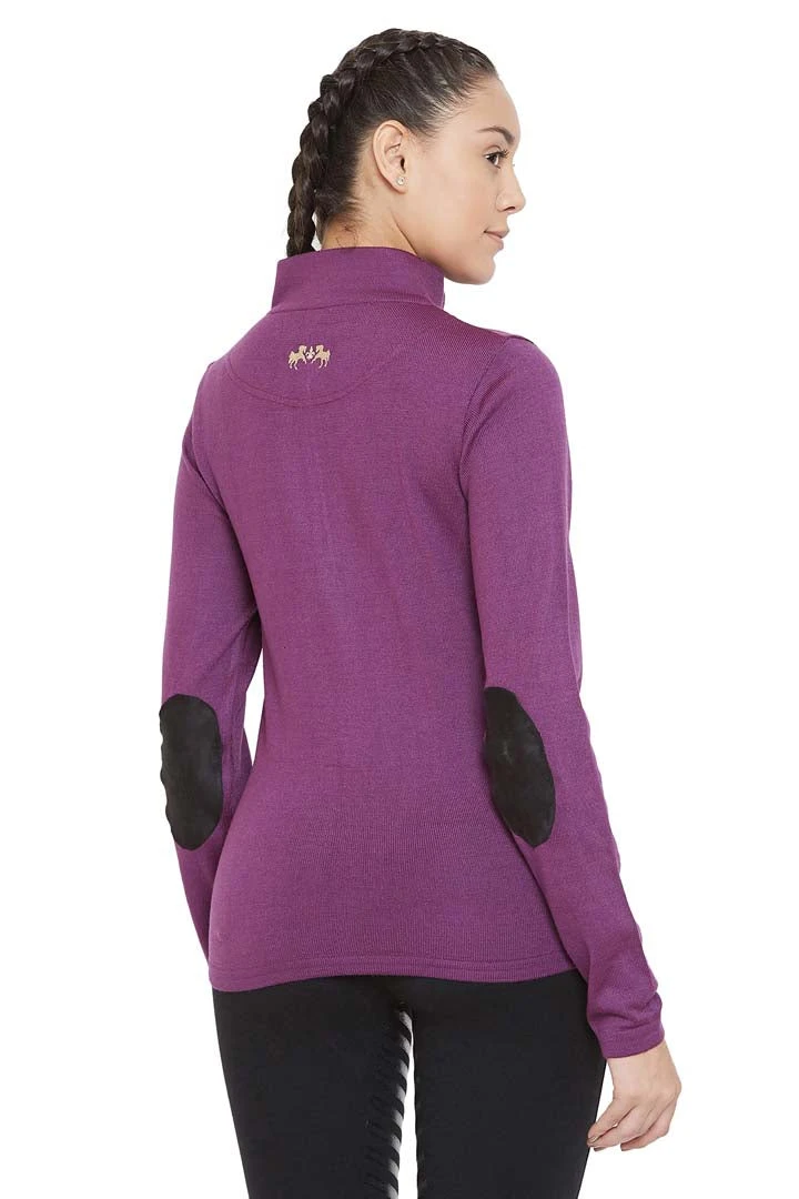 The Equine Couture Fjord Sweater offers a flattering shape and design elements that help you brave the cool weather. A quarter zipper allows for full or partial coverage while a stand up collar protects the neck. Contrast elbow patches give a whimsical touch while reinforcing high friction areas. A clean-cut sweater is perfect for layering with a vest or jacket for hacks or lessons!
