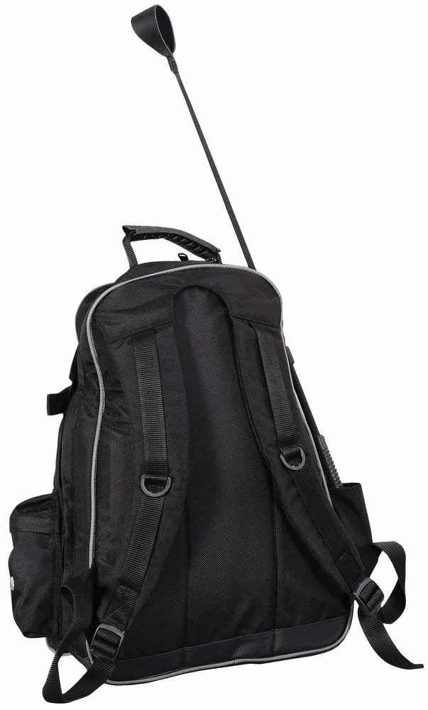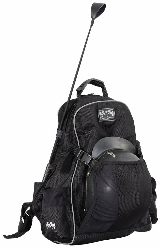 Designed for the on-the-go equestrian, this attractive backpack can accommodate all of your ring side needs. The Pro Back Pack by Equine Couture keeps everything organized and in one convenient, portable location. Water-resistant and featuring multiple specialized pockets, hard to carry items such as a helmet and crop can easily be tucked away and easily accessible.