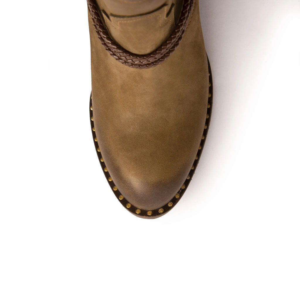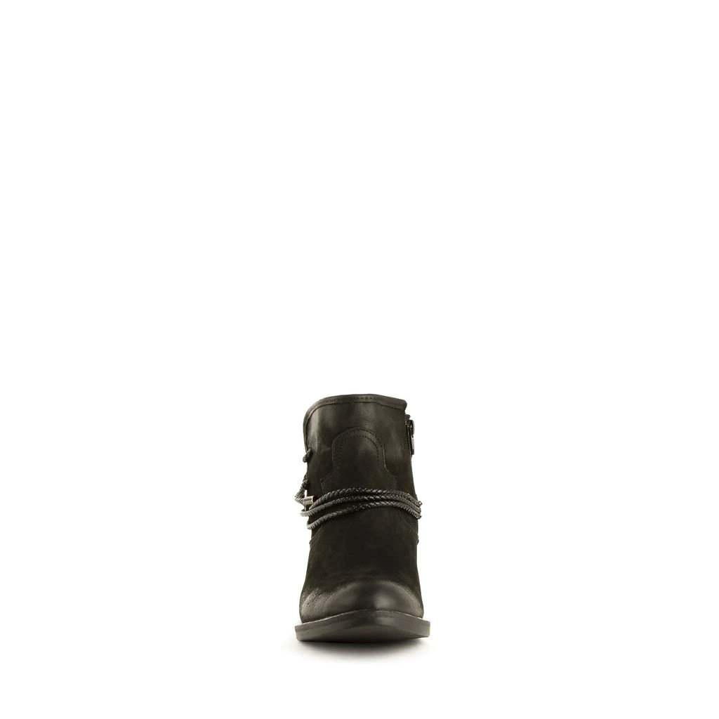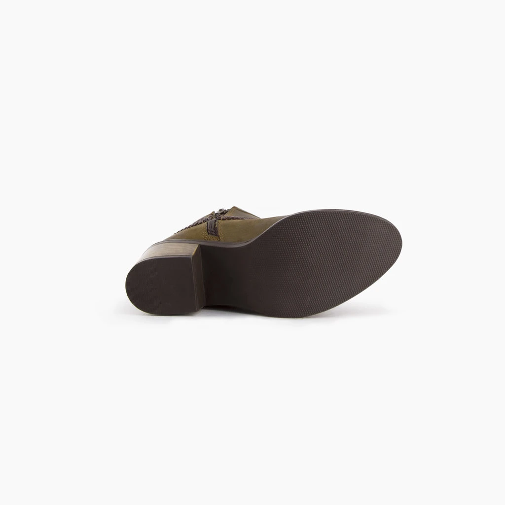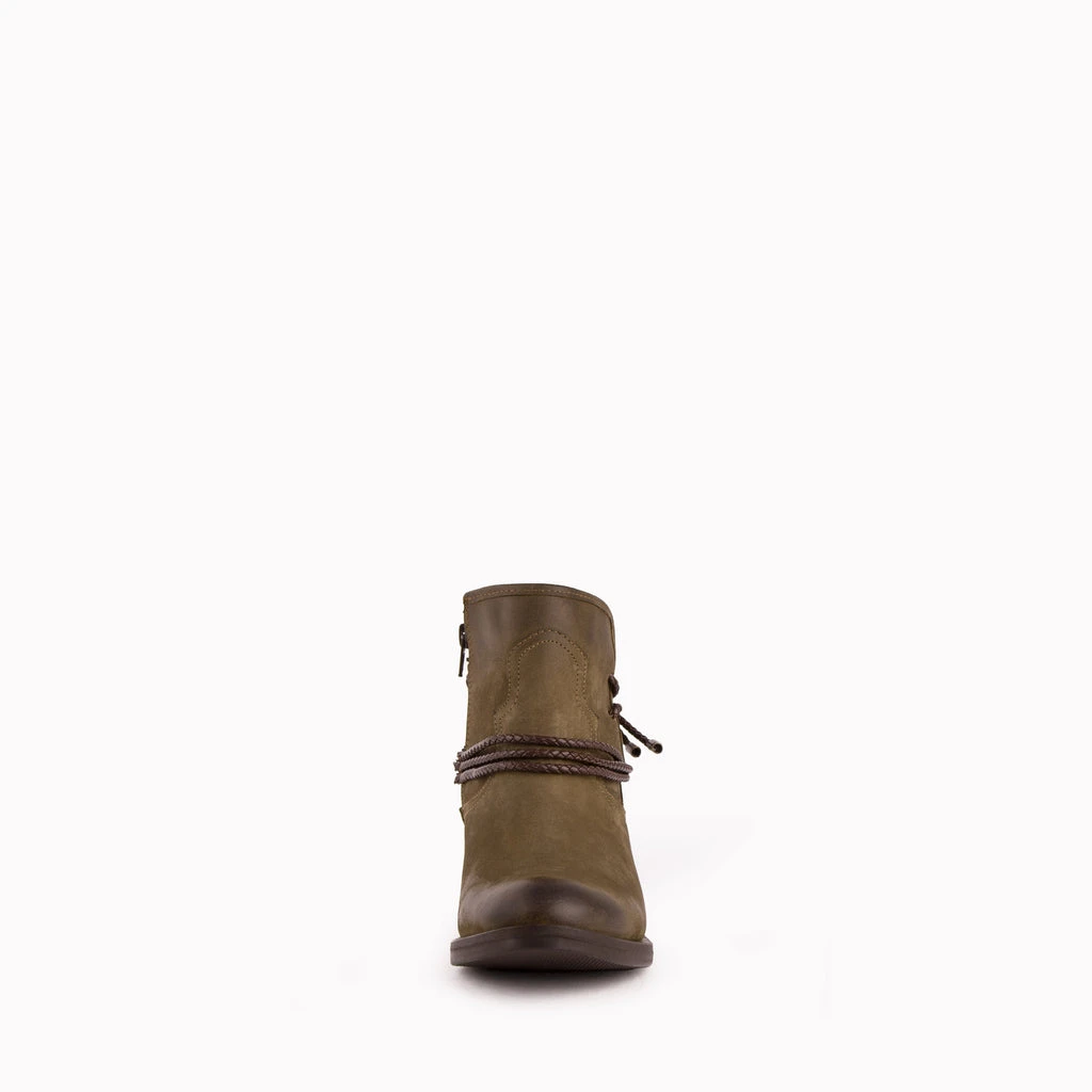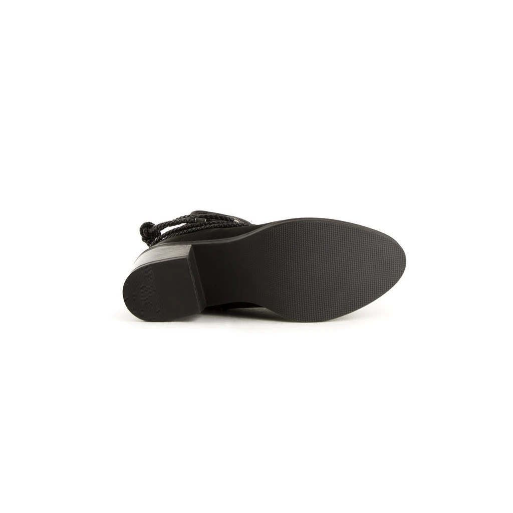 This ankle bootie with a rolled rope embellishment adds serious style to fun fashion.