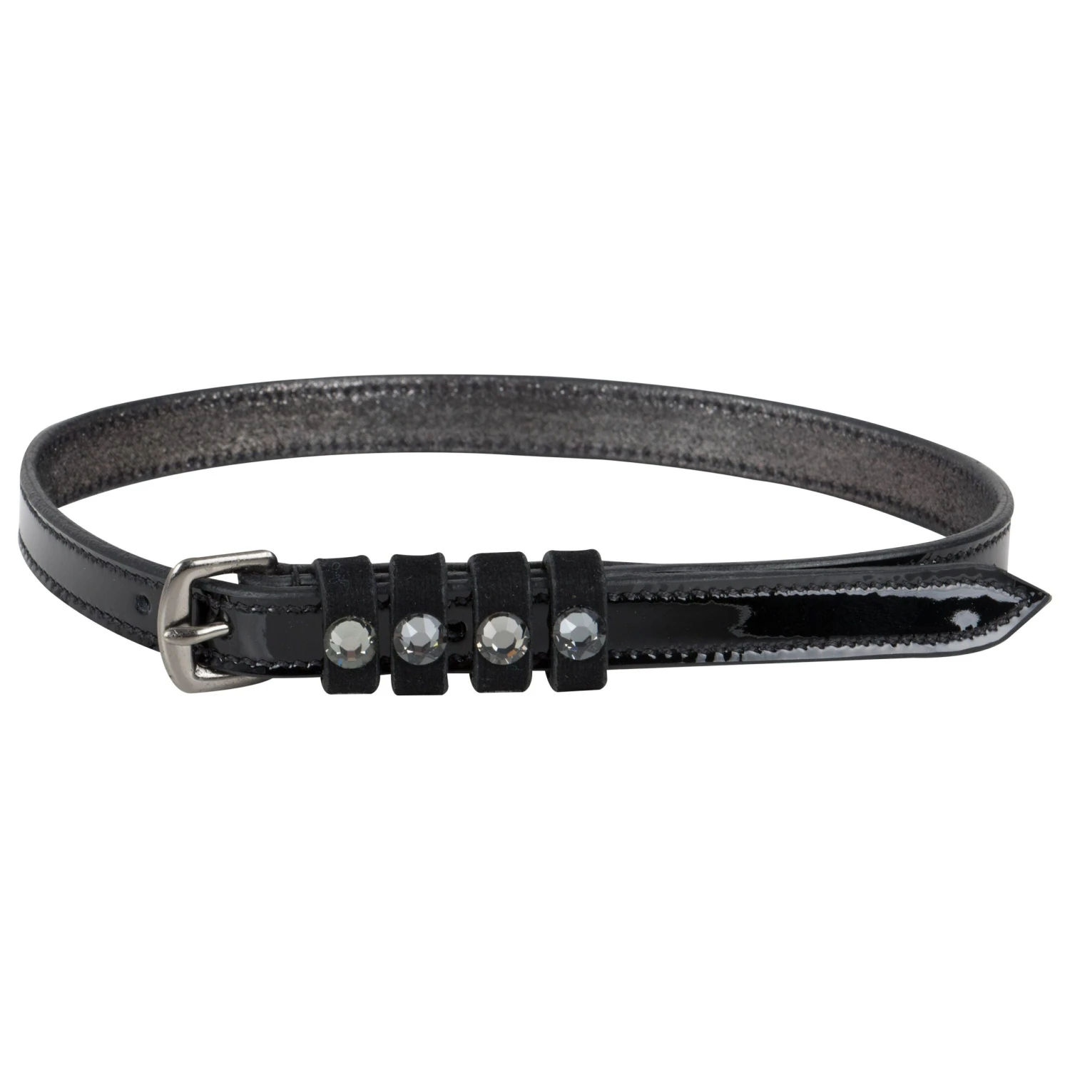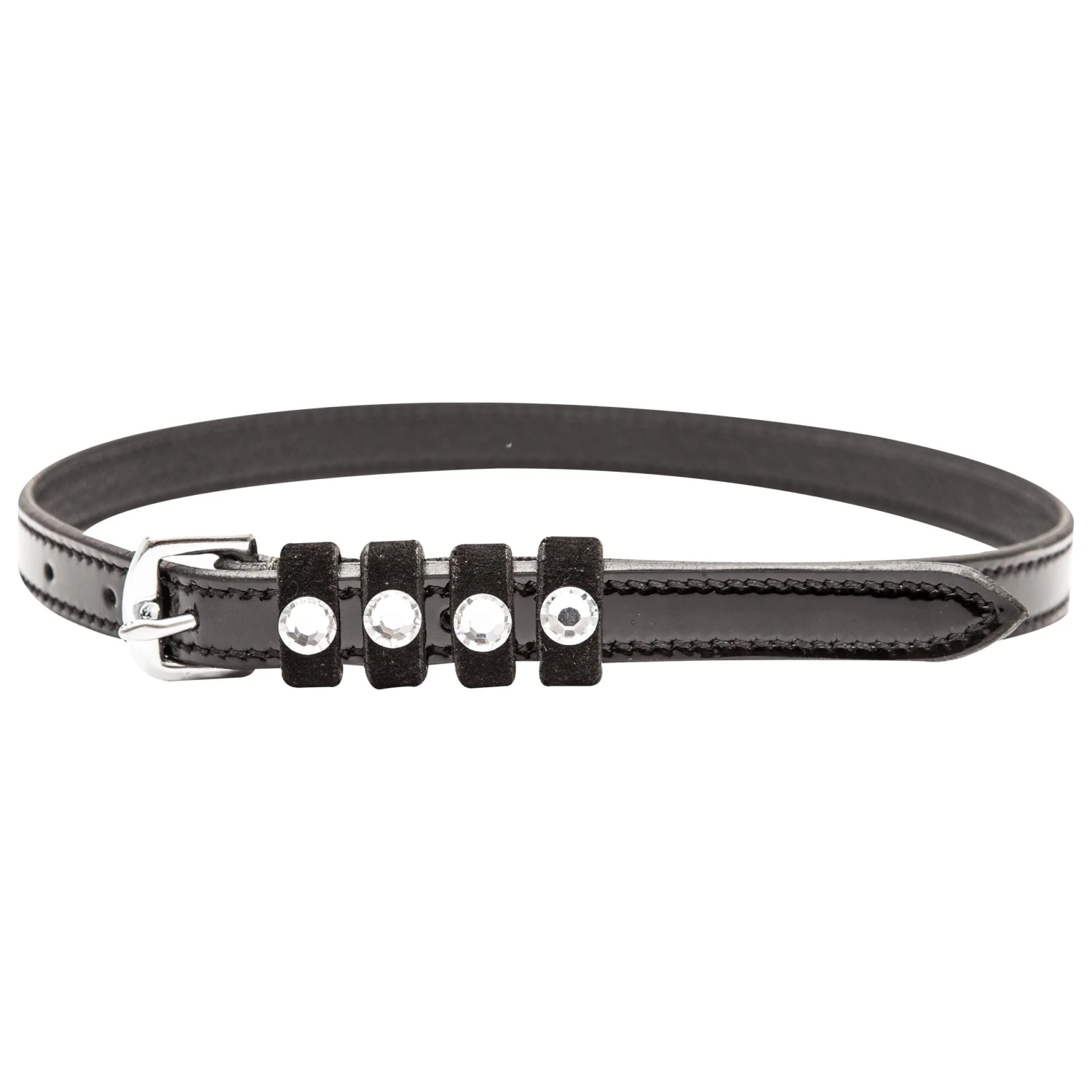Pardouz spur straps of beautiful quality leather and luxurious appearance by the patent leather accents and the inserts with strass stones. By pair.