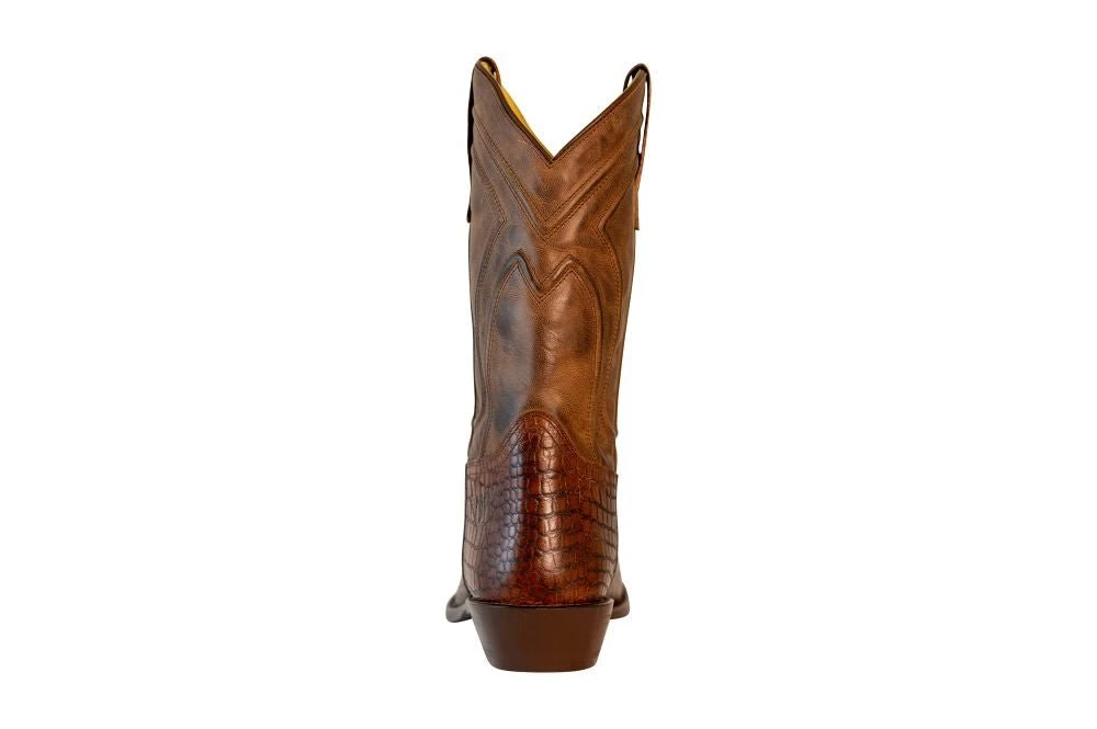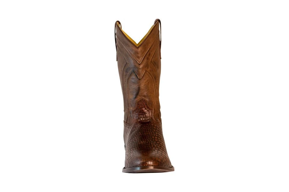 TuffRider Men’s Hayden Leather Cow Croco Printed Wide Round Toe Western Boots