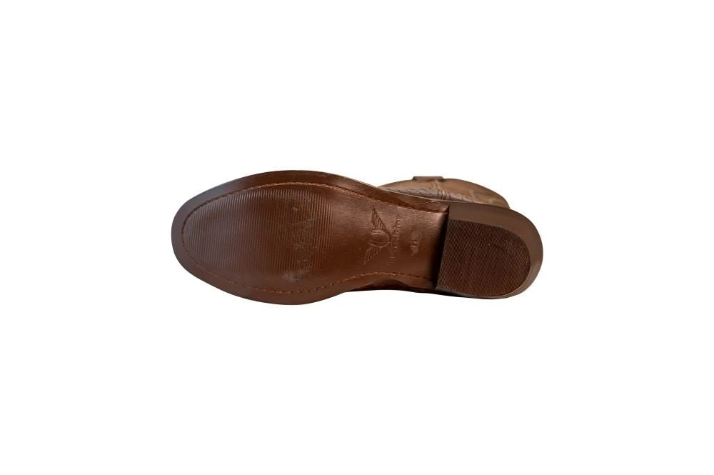 Whether you’re heading to a country bar, or are just looking to stand out from the crowd, these Hayden Western Boots by TuffRider will definitely make heads turn. The alligator-inspired print on the vamp and pull straps lend a bold style statement. The cow Croco print and goat vintage sand leather lend a premium and classy look. Crafted with handmade resin rubber soles to help make them withstand everyday use. These western boots come with a long tube shaft to give better coverage to your legs.