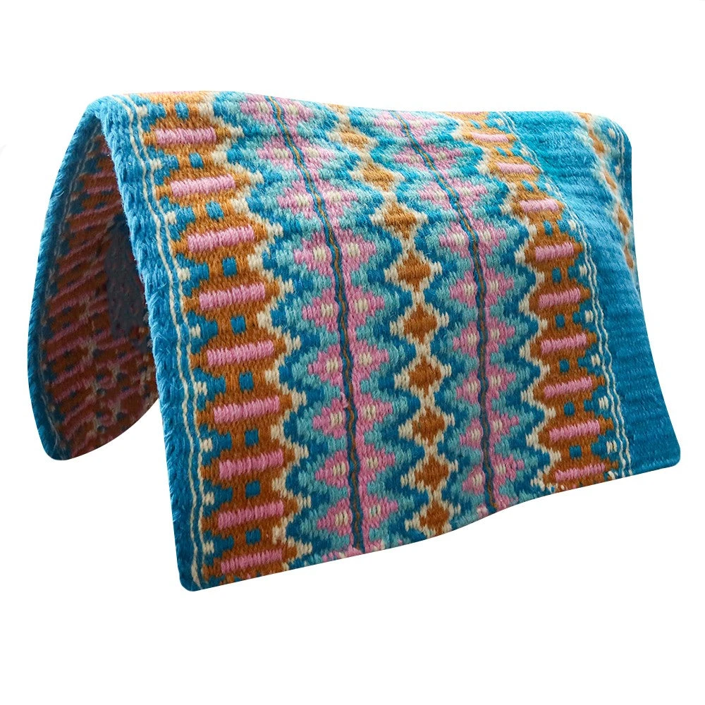 The TuffRider Silverton Western Woven Saddle Blanket is made with a beautiful combination of eye catching colors in a traditional western design. Available in size 34×40, this woven western saddle blanket will fit under most saddles comfortably.